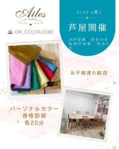 ♪JR/阪神 芦屋駅すぐのAilesさまで、パーソナルカラー・骨格診断会を開催♪